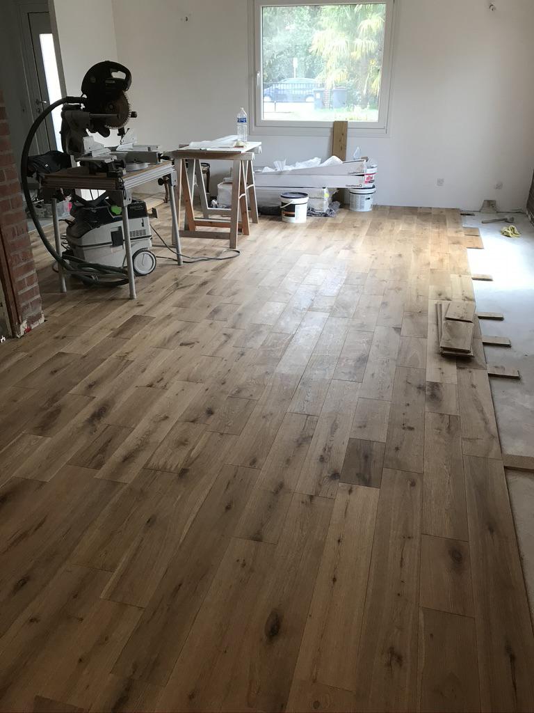Rénovation des sols + pose carrelage et parquet massif collé