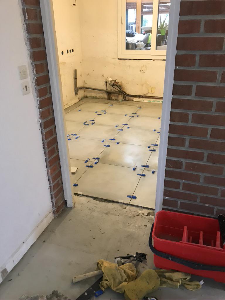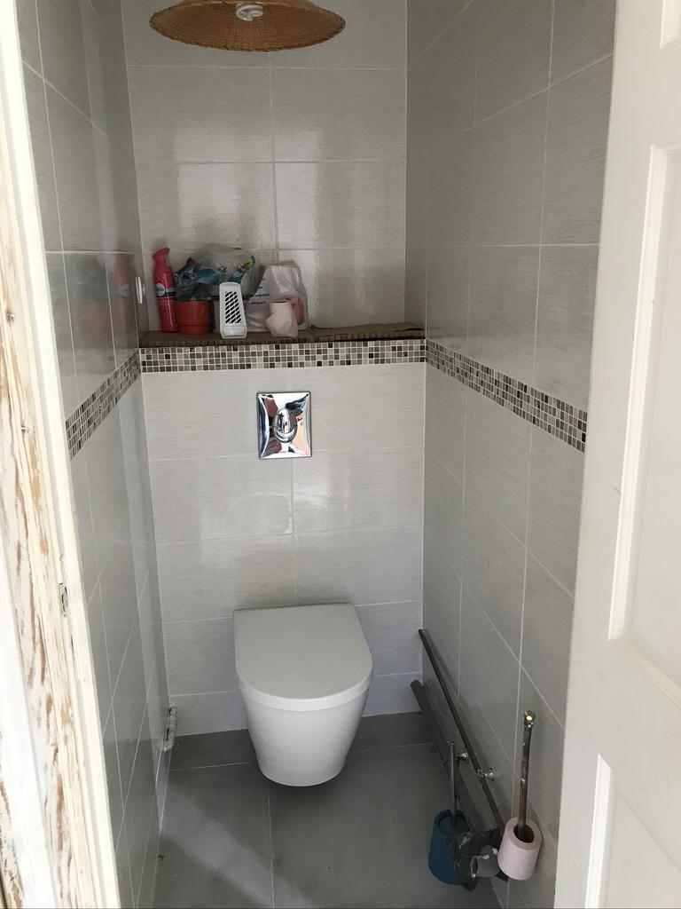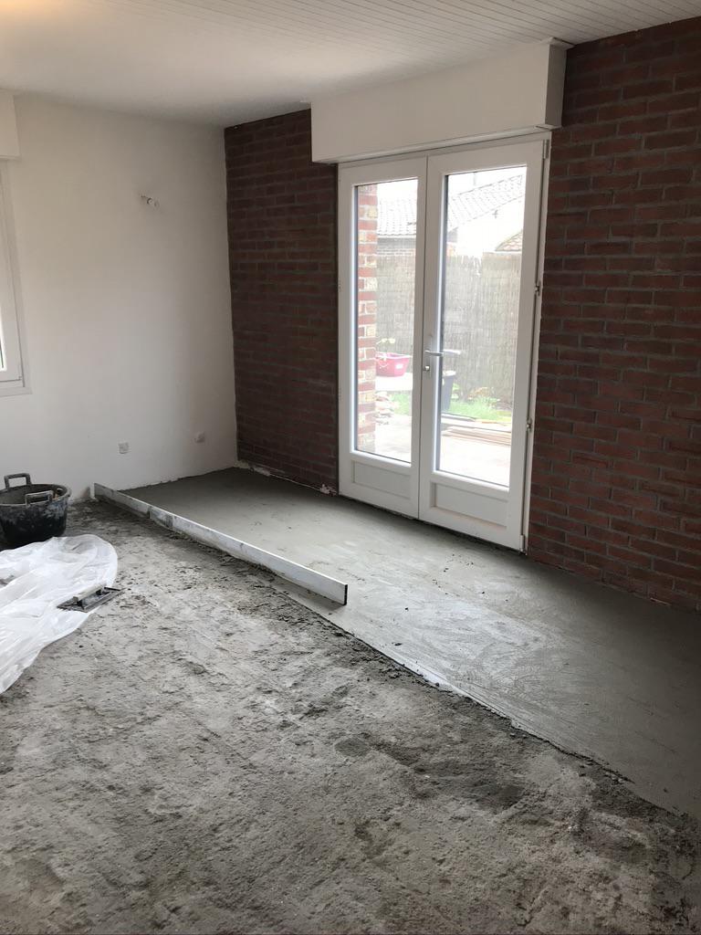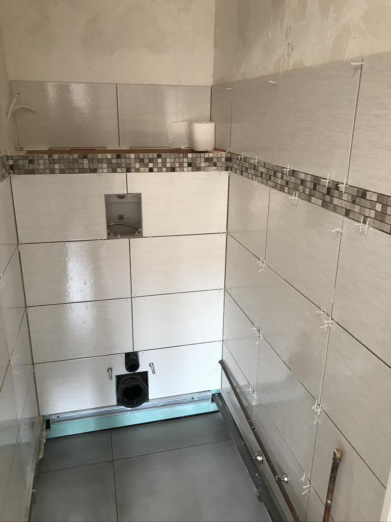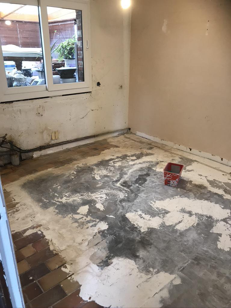 Pose d’un carrelage 60x60 en double encollage avec traitement des joints + pose de plinthes assorties