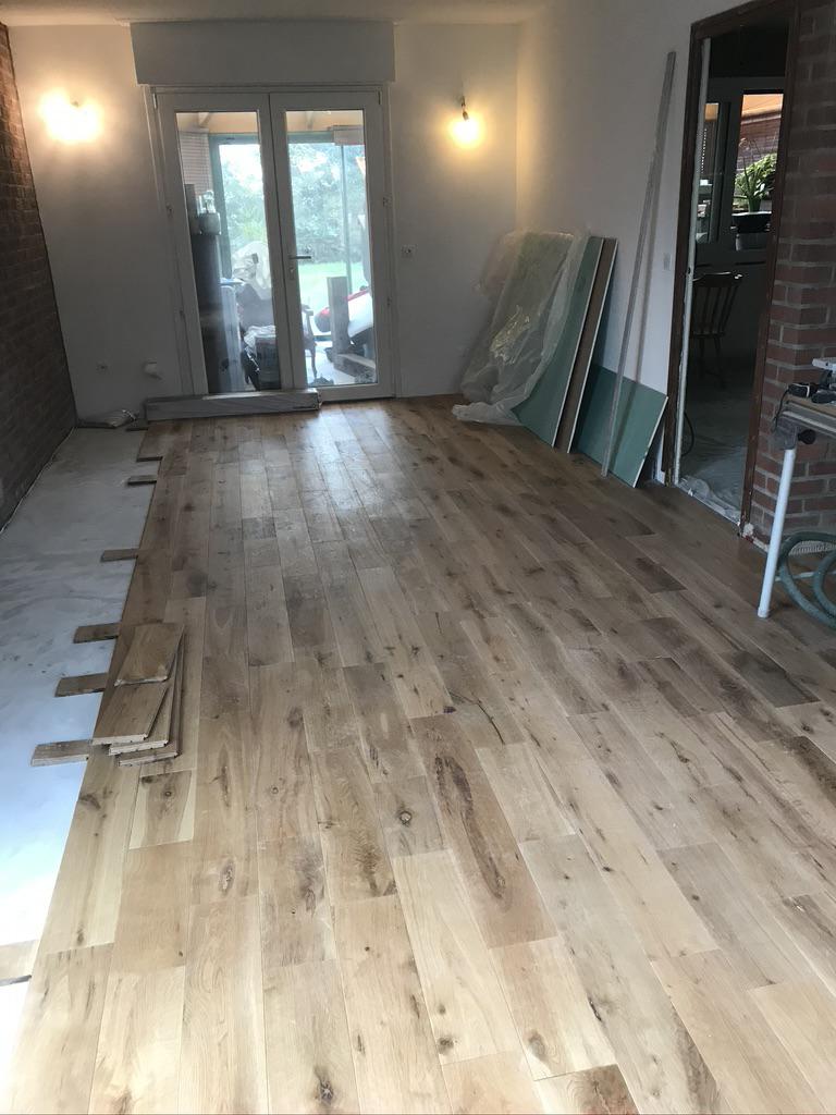 Pose d’un parquet chêne massif collé + pose de plinthes décor chêne