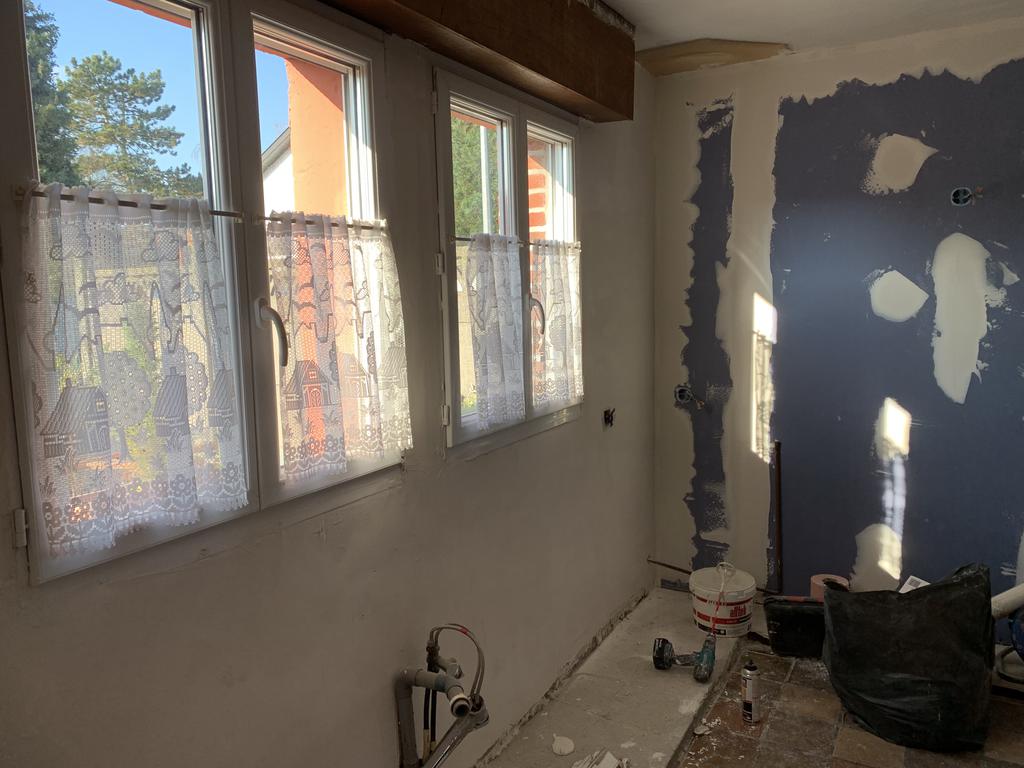 Suppression de l’ancienne crédence en carrelage puis reconstitution des murs au MAP