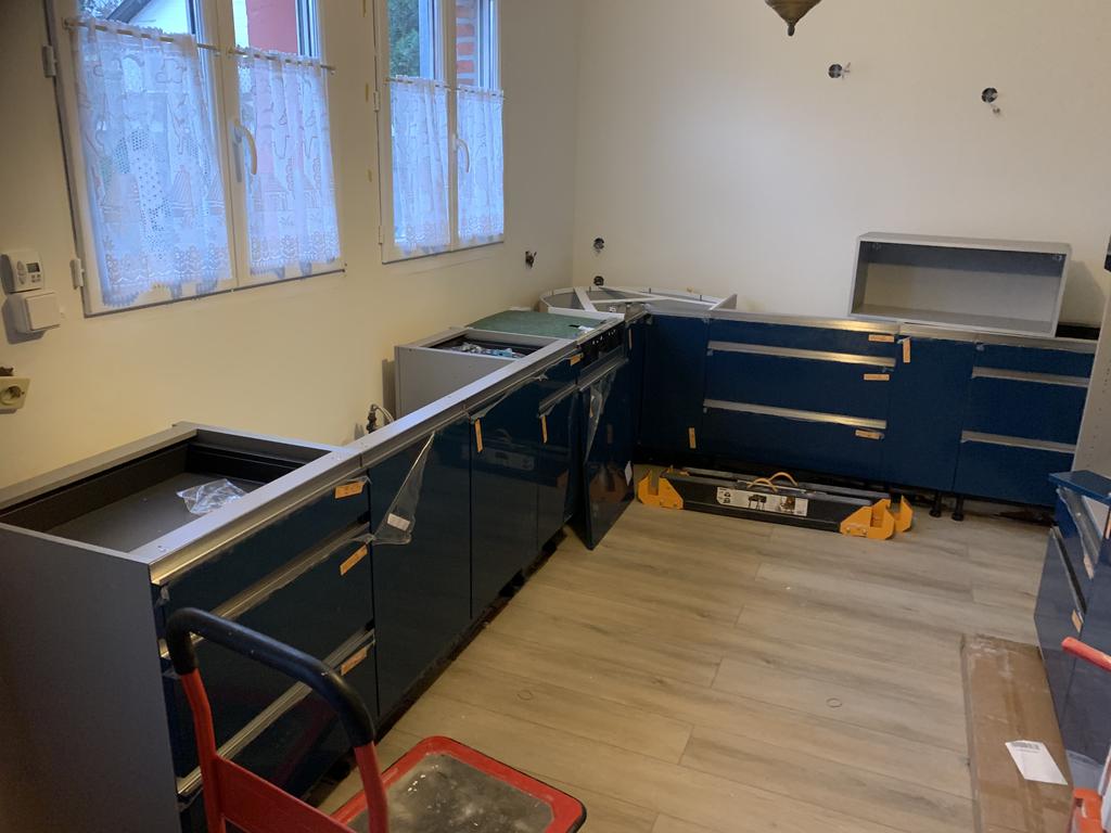 Pose de la nouvelle cuisine modèle Pigments avec poignées intégrées couleur Nuit Brillant [Lapeyre Capinghem]
