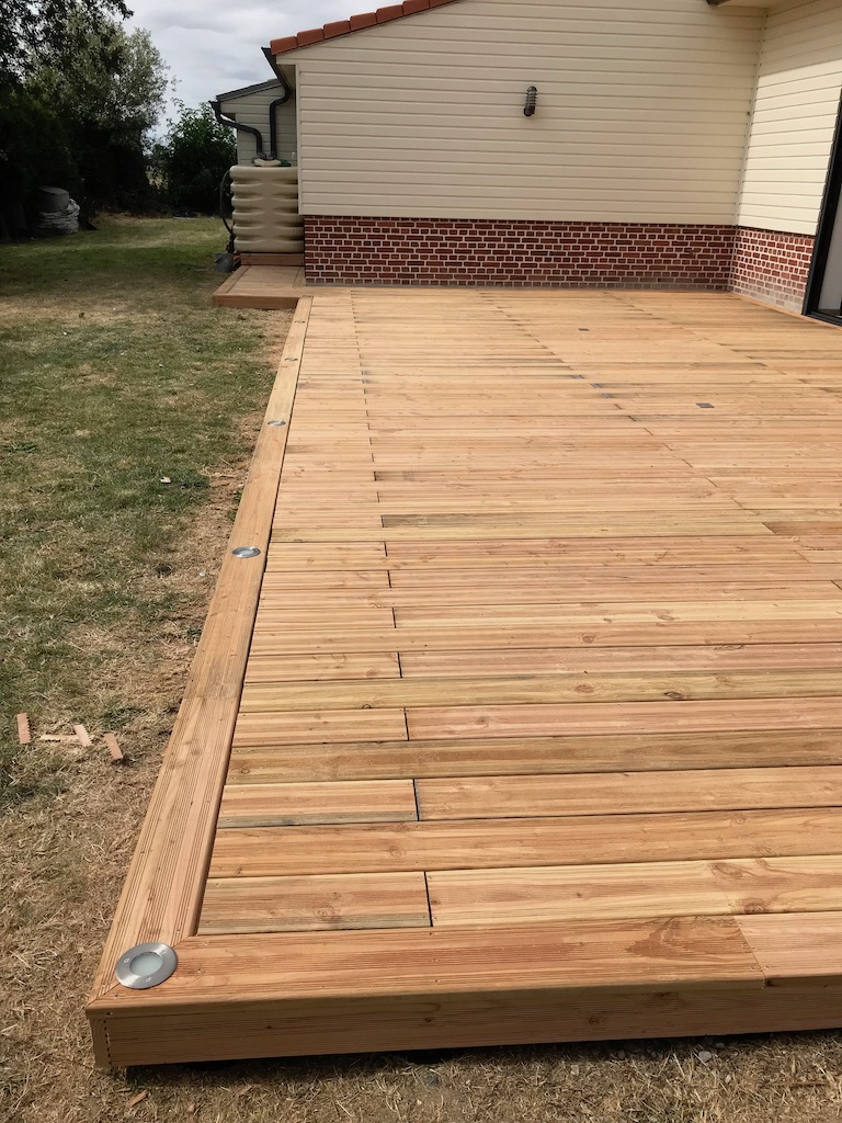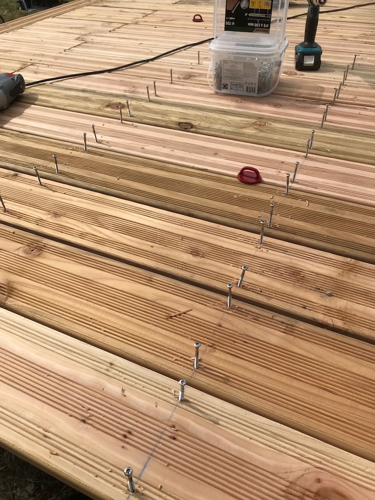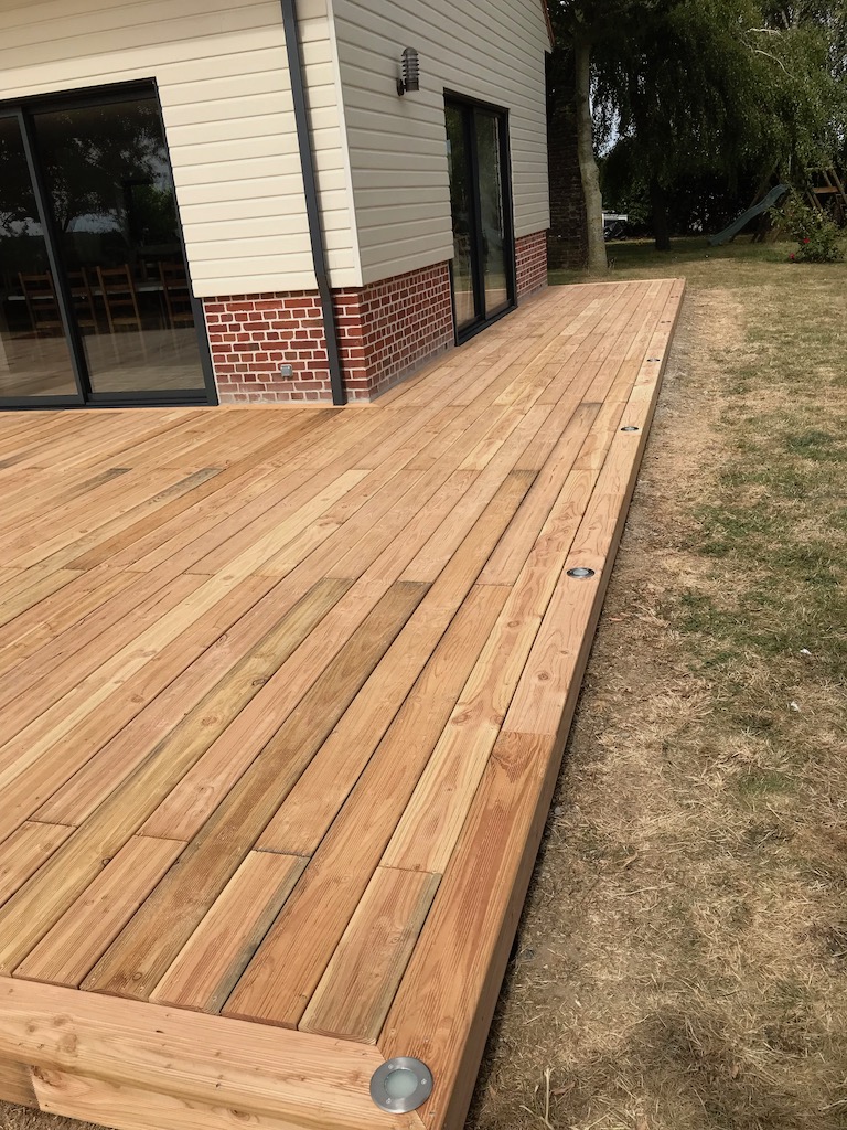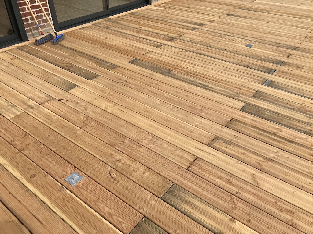 Fixation des lames de terrasse en Douglas avec vis Inox