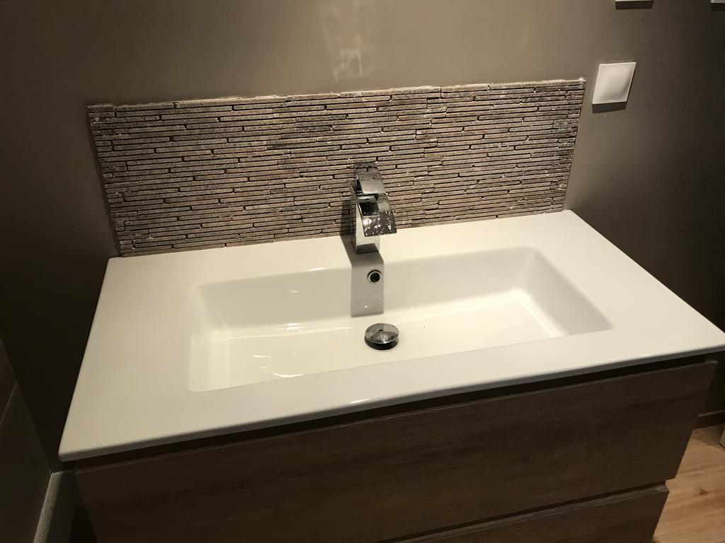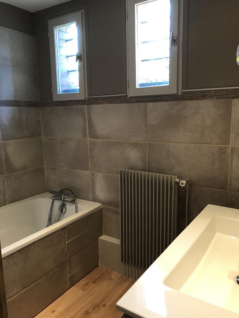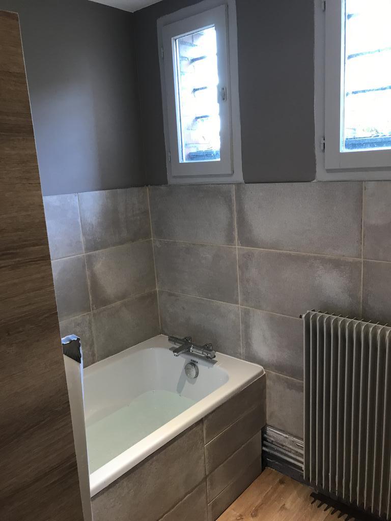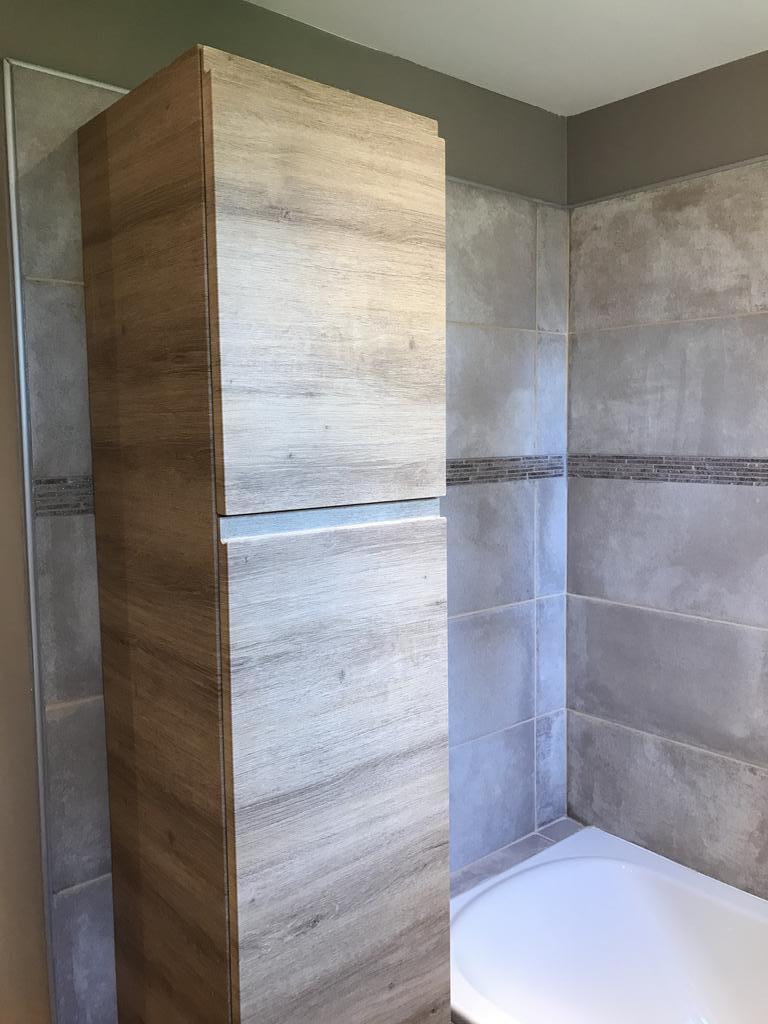 Pose de la nouvelle baignoire, des meubles, du lavabo et de la robinetterie